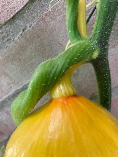 8 dagen geleden bevrucht en nu al zo groot! Je ziet zelfs al een beetje oranje verschijnen bij de steelaanzet. Ben echt aangenaam verrast door de Uchiki Kuri. Groeit goed en snel, prachtig blad, nu de smaak nog 😉. Dit wordt vrijwel zeker een blijvertje.