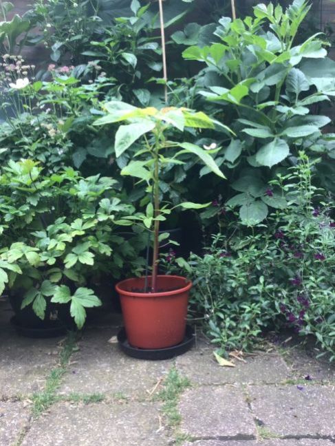 25. Vanwege de goede pot-resultaten van sommigen heb ik mijn tweede exemplaar vandaag in een definitieve (denk ik) pot gezet. Het volle grond exemplaar groeit goed en ook de laatste zaailing heeft een groter potje gekregen. Respectievelijk 10 cm, 40 cm en 50 cm hoog. Alles is overigens gelijktijdig gezaaid alleen op andere tijdstippen boven gekomen.