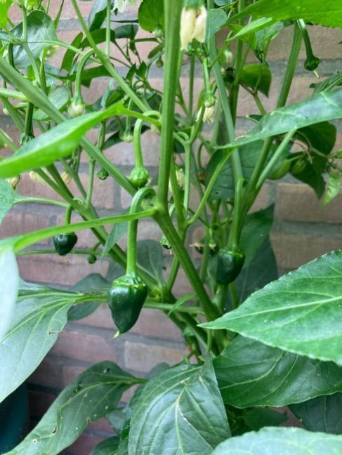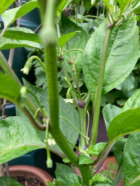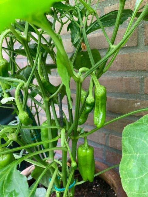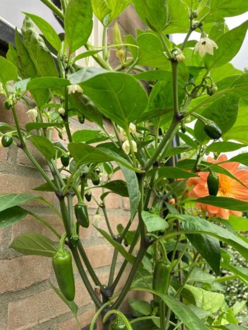 Mooie planten @Polly168, en zoveel verschillende soorten. Heerlijk als je daar plek voor hebt! Hier gaat het ook goed, de eerste padron vandaag geplukt en uit het vuistje geknaagd, smaakte lekker kruidig. Er volgen er binnenkort meer (foto 1 + 2). De chiluacle is ook bezig aan de eerste pepertjes (foto 3). De jalapeno zit vol, heb er al meer dan 20 geteld en nog vol met bloemetjes (foto 4). En tenslotte: de Jeanette heeft voorzichtig de eerste bloemetjes geopend (foto 5).