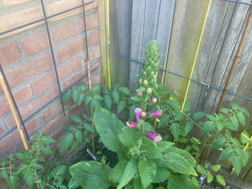 Vandaag de laatste tomaten waar ik plaats voor had in de volle grond gezet. De laatste twee gaan naar de buurvrouw. Ook de klimspinazie-planten staan op hun definitieve plaats tussen de tomaten. Foliekasje afgebroken, die ligt weer in de schuur tot volgend jaar begin maart. Planten/kruidenrek weer terug op de plaats waar het foliekasje stond, vol met alle dahlia’s waarvan de meesten morgen de grond in gaan. Ook de dragon, 5 soorten munt, oregano, maggiplant verpot en hun plekje in het rek gegeven. Een paar lage dahlia’s houd ik in potten. De potten-groep voor de regenton gezet: grote oleander, olijfboom, phlox, anemonen, astrantia’s, hosta, dahlia en een grote pot met mme Jeannette. Moe maar voldaan 😊.