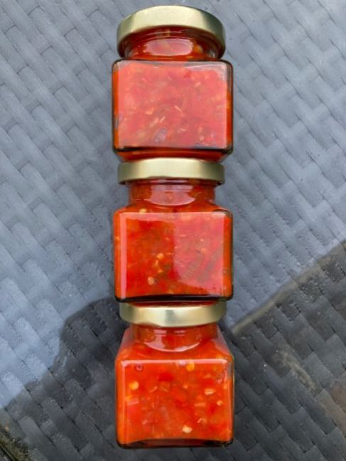 Het is gelukt 😃, mijn ‘Ruderalis Red’… er waren geen gele paprika’s en pepers voor handen. Maar hij is heerlijk! Nogmaals dank Ruderalis.