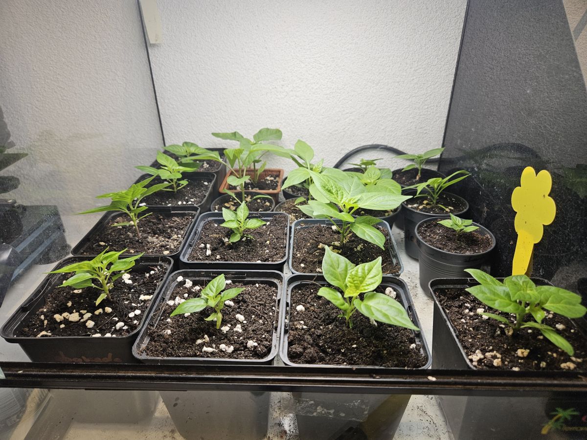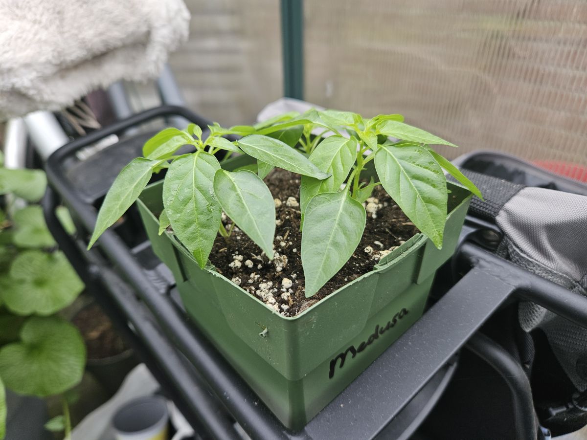 Hier staat nu sinds 2 dagen een 3 tal Medusa samen in de kas in P11. Als een gok, meer is het niet... Maar 2 jaar terug hield een volwassen plant -6 vol, om daarna nog te produceren.. Ben eigenlijk wel benieuwd hoeveel het verschil in groei gaat zijn. Ze staan op een fiets, door de al volop aanwezige naaktslakken ben ik bang dat het op de vloer van de kas te riskant is. Ik heb 2 P11 binnen staan met 3 Medusa's er in van dezelfde leeftijd- als vergelijk. Mellie, ik hoop dat er genoeg variatie in de mix zit, en dat er toch nog een hoop "gewenste" pepers tussen zitten. Variatie is top, maar te veel hitte is ook niet super... in 2020 had ik meer carolina reapers door een foutje (volle tray zaailingen laten vallen...😶), dan eetbare pepers...