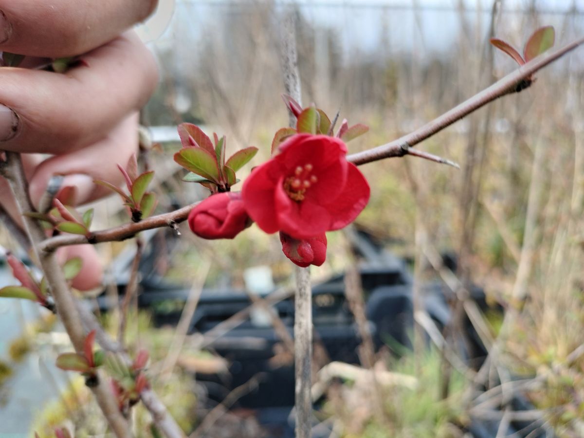 1 jaar oude zaailing gaat dit jaar bloeien. Zal geen vrucht dragen want er bloeien geen andere c. Japonica in de omgeving.
