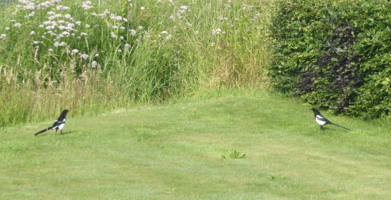 De eksters, kraaien en spreeuwen scharrelen precies rond op de plekken, waar slakken wonen. Ik doe elke ochtend een ronde slakken rapen, maar ik haal er tegenwoordig nooit meer dan hooguit tien op, meer niet. Weet je nog vorig jaar, dat we met gemak meer dan 100 raapten? Ik geloof echt niet, dat de slakken dit jaar minder zijn, met al die eitjes, die gelegd moeten zijn. En aangezien juist deze drie soorten vogels, die graag slakken eten, precies op de plek waar de slakken wonen rondbanjeren en eten, weet ik wel bijna zeker, dat ze die slakken oppeuzelen.