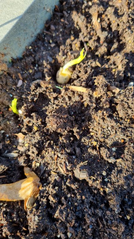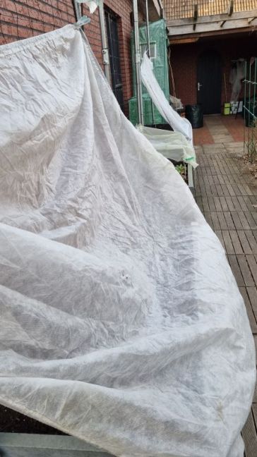 Ik heb een aantal fotos bij elkaar gevoegd, omdat ik ze anders niet kon plaatsen. Vanaf nu zal ik proberen per week wat te plaatsen, dat is voor mij en voor jullie ook overzichtelijker. 10 februari de aarde is nog steeds bevroren, wat in de zakken zit, maar ook in alle bakken. De ijsemmer op het gras is flink ontdooid, maar het is gewoon nog steeds te koud. 3 - 4 graden, afgelopen nacht nog -1. Ik heb nu een gedeelte van 1 zak aarde in de werkplaats gezet, daar is het meestal 2 graden warmer. Dat kan ik dan gebruiken om alvast 1 bak te vullen om daar de tuinbonen in te zetten, die al een paar weken in de werkplaats staan. Alle oude plantenzakken deels vervangen door kunststof bakken, wachten totdat alle aarde dus ontdooid is. Maar ik bewaar ze toch nog even, want ik zie dat sommige zaaiingen het heel goed doen en dan kan ik ze dit seizoen nog even gebruiken, want ik kom vast bakken te kort. Ik had een emmer weggezet van zaai en stekgrond en dat was niet bevroren, dus dat heb ik gebruikt om broccoli, koolrabi, veldsalie en aspergesla voor te zaaien. Ook hebben wij gebruik gemaakt van de tijd om de kweekbakken te gaan stellen. Mijn man heeft stukjes van oude snijplanken gesneden en dat onder de poten gedaan. Dat kun je hier op de foto zien. Maar nu zien wij toch dat er nog gaten geboord moeten worden in het midden van de bak. Dat gebeurt een andere keer, want het werd nu weer heel erg koud. 11 februari 2026 Alle aarde in de bakken nog steeds bevroren, alleen een aangebroken zak die ik gisteren in de werkplaats heb gezet is aardig ontdooid. Mijn man was aan de telefoon, dus hij kon mij even niet helpen met de zware zak aarde. Dus ik heb met een schep gedeeltes overgebracht naar achteren via een emmer en een grote bus. Na 4 x lopen had ik 2 bakken achter gevuld. Dan weer even water halen en de tuinbonen erin gezet en gelijk even beschermd tegen vogels en muizen. En dat alles tijdens de motregen. Wij hebben eerst 6 weken koude en sneeuw gehad, nu regent het heel de week om het weer over te laten gaan in vorst aan het einde van de week. Dus het moest nu gebeuren. Ik kijk even of ik morgen de doperwten erin kan zetten tussen de regenbuien door. 12 februari 2026 De gele ui, rode ui en sjalot vanuit de kweekbak in potjes gezet volgens een bepaalde methode. De zaden leg je plat op de aarde, doe er dan wat aarde bovenop en trek de zaaiing wat omhoog, water erbij, klaar. De meeste zaden waren al dood, die stonden te lang binnen nadat ik ze eigenlijk al had afgehard, maar nog lang niet naar buiten kunnen. Ik heb een aantal lange zaden eruit gehaald, waarvan ik denk dat ze het misschien nog gaan redden. Gele ui 6, rode ui 7 en sjalot 5 stuks. Ze staan nu even binnen om bij te komen bij het grote raam. Het was de bedoeling om ze de dag erna weer buiten te zetten, maar dat is niet gebeurd. Het vroor te hard. Met de doperwten kon ik nog niets, het vriest nog steeds en er valt ook nog steeds sneeuw. 13 februari 2026 Weer een pak sneeuw, het houdt niet op. Ik heb nogmaals 9 zaden Tuinbonen in 2 emmertjes voorgezaaid. Ik had het eerst via een kartonnen slakkenrol geprobeerd. Ik wou op dat moment geen plastic zak nemen, ik had gelezen dat het ook via karton kon. Eerst had ik dik karton genomen, kon het amper verwerken, dus toen een andere doos genomen, versneden en die in het water gelegd. Ik had alles opgerold, en kwam erachter dat ik het extra laagje aarde was vergeten, dus weer uitgerold en opnieuw. Maar ik vond dat het karton zo week werd en uit elkaar viel, dat ik het toch weer uitgerold heb en het in emmertjes heb voorgezaaid. Ik weet niet of ik dit nu handig vind, maar ik moet ook vaker gaan oefenen. 14 februari Ik zag dat een zaadje van de klimspinazie opgekomen was in de koelkast en die heb ik in een potje gezet. Wat een fragiel zaadje is dat. Intussen (1 maart) heeft hij er wat blaadjes bijgekregen. Ik heb wel wat aarde om het plantje gedaan, want hij is heel iel. En ik heb nog een nieuw zakje in de koelkast gezet met 3 zaden om te kijken of er nog wat verschijnt, zodat ik eventueel een 2e plantje kan krijgen. Intussen heel wat pepertjes de laatste 2 weken verspeend, ik heb nu 40 stuks staan. 15 februari De 9 zaden NZ-spinazie gezamenlijk in een emmertje gezaaid, na een nachtje ze geweekt te hebben. Ik had de rest in de BZD gedaan, ik wou ze eigenlijk niet meer zaaien, want ze kwamen vorig jaar spontaan op en wel op diverse plekken en ik heb ze op de juiste plaatsen gezet waar ik ze wou. Wat zijn die pruimen emmertjes handig, die gebruik ik overal voor. Ook de kwarkbakjes die, gebruik ik om de emmertjes of P11 bakjes in te zetten. 16 februari Ik kan buiten nog steeds niets. Het ziet er wel prachtig uit, maar ik wil graag mijn bakken voorbereiden. 17 februari Nu een poging gedaan om slakkenrollen te maken met: rode ui, gele ui, sjalot, veldsla en gele biet. Ik denk dat het met de uien in de potjes toch niet goed gaat, die ik al eerder had gezaaid. Ik heb genoeg zaden, dus ik kan het later ook direct zaaien. Ik heb begrepen dat je uienzaden toch beter elk jaar opnieuw moet kopen. Nog vele doperwten en sugarsnaps in de deno gelegd. 18 februari Kapucijners in potjes gedaan, koolrabi, kaneelbasilicum en diverse pepers verspeend. Nog extra erwten in de deno gedaan, ik ga toch ook nog voor het hek zaaien, ik was eerst van plan om het alleen achter het hek te zaaien, vanwege de courgettes die er later komen. Of mijn kapucijners het gaan redden weet ik niet na al die kou. Een gedeelte had ik in de bak gezet met plantjes die al opgekomen waren, maar ook een deel in de aarde gestopt met alleen worteltjes, die was ik vergeten namelijk uit het bakje te halen. Ik zag achteraf dat ze nog in de werkplaats stonden. 22 februari Touw gespannen rond de eerste serie tuinbonen en stuk vlies aan de onderkant tegen muizen en vogels bevestigd. Doperwten en sugarsnaps in de bakken gezaaid en ook de gegroeide doperwten geplaatst en even tijdelijk beschermd tegen vogels en muizen en ratten. Ik heb begrepen dat die ook goed ku