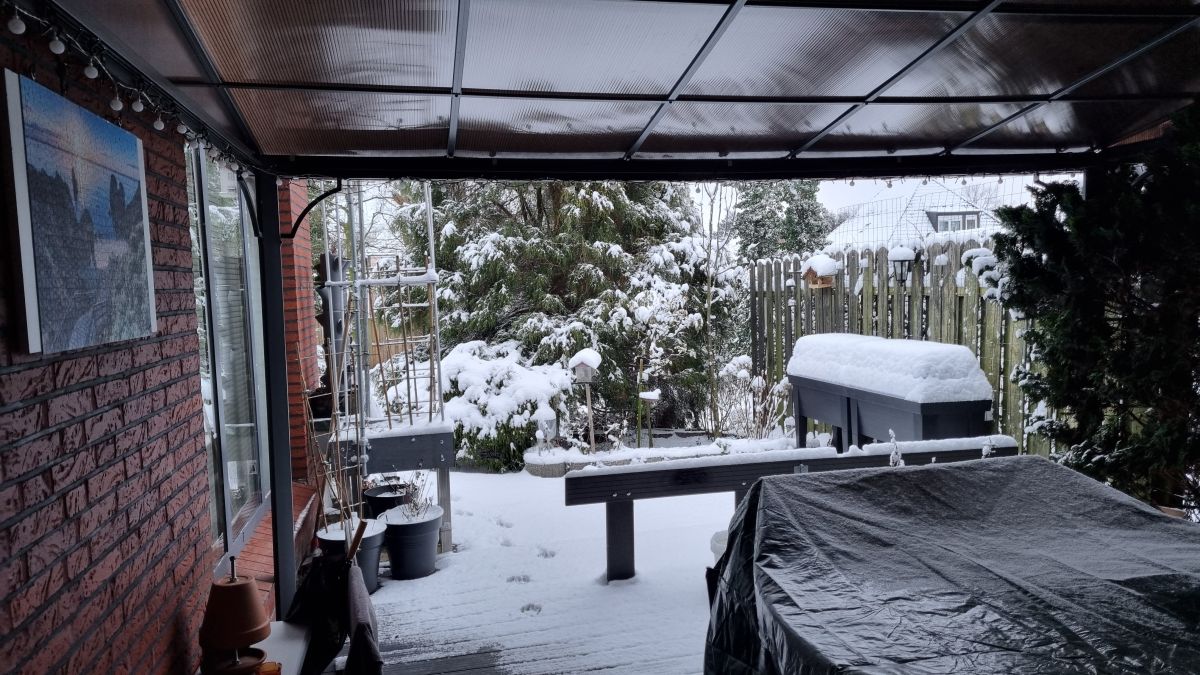 Wij krijgen het zo ook weer. Ik denk zeker wel dat het de 12e keer is dat wij sneeuw hebben en morgen ook nog. Het is deze winter echt prijs met de sneeuw.