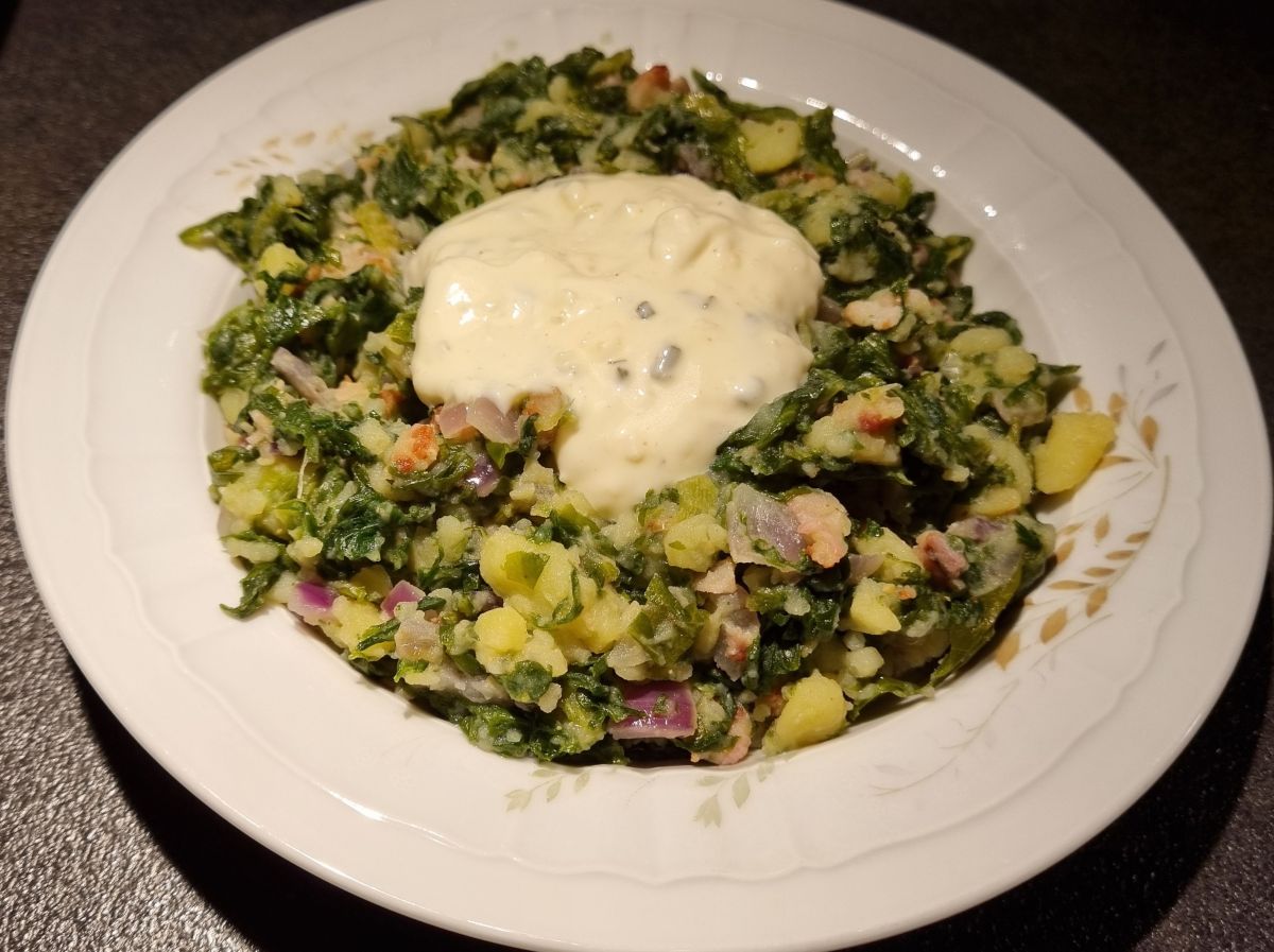 Gisteren andijvie uet stamppot met spekjes, rode ui, mosterd en knoflooksaus. Simpel kan zo lekker zijn. Normaal met rauwe andijvie, maar met geblancheerde andijvie en dus even gekookt erna ook prima.