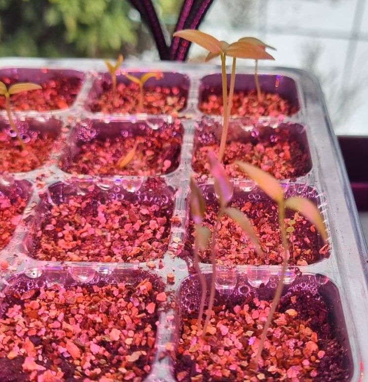 Ik zet ze altijd gelijk over, ook al hebben ze maar 2 kleine kiemblaadjes en zijn ze soms wat langer. Jij moet kijken wat bij jou het beste werkt. Ik doe het ook voor het eerst. Ik zet ze dan gelijk in een P9 potje met zijn 3-en bij elkaar. In heb begin had ik er soms maar 2 en dan zet ik er later nog 1 bij. Wel gelijk een stokje in het midden, als je dat later doet, dan prik je misschien in de wortels die alle kanten op kunnen gaan. Dat stokje hoeft niet lang te zijn, anders passen ze weer niet in een kast als je dat hebt met verlichting. Die stok kun je later vervangen door een wat langere. Precies wat @Bernaar zegt, niet helemaal vullen, dan kun je er altijd nog wat aarde bij doen, mocht het toch te slungelig worden en lekker diep in de grond zetten met de kiemblaadjes net boven de grond. Bij mij is meer dan de helft opgekomen. Ik had er nog een aantal bijgezaaid, omdat ik die graag ook wilde. Zie hier, weer een aantal die opgekomen zijn, die ga ik dus in P-9 potjes zetten. De voorste zijn er 3 in 1 cel en die kunnen er dan gelijk bij elkaar. Ik heb dit jaar er steeds wat vermiculiet erop gedaan, ook bij de P9 potjes, tot nu toe geen rouwvarenvliegjes.
