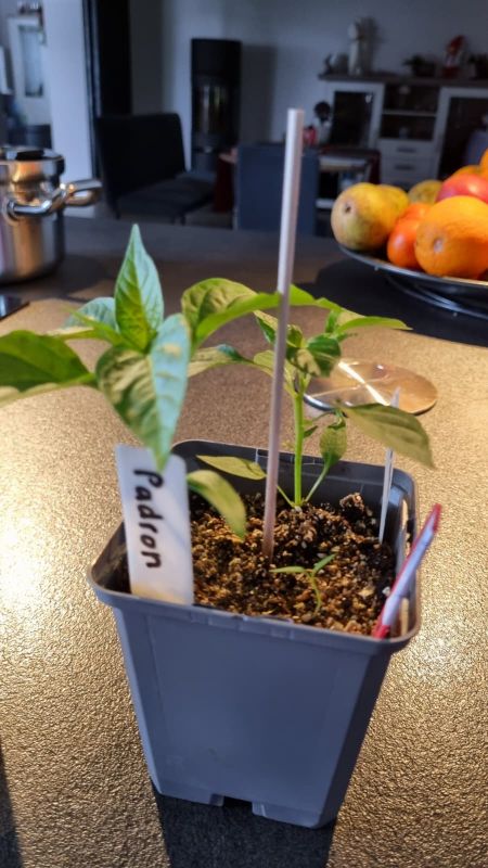 Die van jou worden gelijk heel erg mooi en breed. Bij mij niet. Dat zal wel aan de verlichting liggen, maar daar kan ik nu niets aan doen. Ik kreeg van mijn vriendin vorig jaar 2 bekers: een met 3 espelette pepers en een met 3 Jalapeño pepers en die bekers zijn nog smaller dan mijn P9 potjes. En die heb ik laten staan, doet mijn vriendin ook altijd totdat ze naar buiten gaan. Ik heb ook P11, maar dan nemen ze heel veel plek in mijn kast in en kan er niets meer staan wat b.v. ook licht of warmte/licht nodig heeft. Want mijn vele pompoenen, courgettes en tomaat komen straks nog in de kast te staan voor het licht en die hebben uiteindelijk allemaal P11 nodig. Maar misschien volgend jaar toch in de P11 gaan zetten. Tot nu toe gaat het goed. Ik denk niet dat nog eens tussendoor overpotten een goed idee is? Die van vorig jaar in de bekertjes kregen gele blaadjes, toen voeding gegeven. Nu afwachten hoe het met mijn 40 pepertjes straks gaat aflopen.