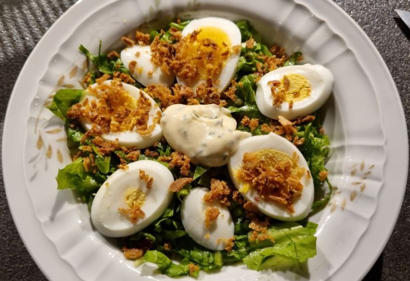 Andijviesalade met pecannoten voor 2 personen Nodig: 🌱 100 gr andijvie 🌱 2 el sesamolie 🌱 Cayennepeper en zout 🌱 2 teentjes knoflook 🌱 2 el pecannoten in stukjes 🌱 Geroosterde uitjes 2 eetlepels 🌱 2 eieren 🌱½ tl mosterd 🌱1 tl appelazijn of witte wijnazijn Werkwijze: 🍜Kook de eieren 10 minuten, laat ze onder koud water schrikken en pel ze. Snijd ze in plakjes. 🍜Was de andijvie goed, centrifugeer ze in een slakom en snijd ze daarna in smalle reepjes. 🍜Maak de dressing met de mosterd, azijn en sesamolie en klop het door met een kleine garde. Voeg dan cayennepeper, zout en 1 geperste knoflookteentje toe. 🍜Vermeng de dressing door de andijvie, voeg de stukjes pecannoten toe. 🍜Verdeel de andijvie over de borden. Verdeel de plakjes ei erover en dan de geroosterde uitjes. Lekker met een toefje knoflooksaus erop en een vers afgebakken broodje. Vond je dit een lekker recept, dan zou ik het leuk vinden als je een reactie zou willen geven op de Facebook groep. Voor meer zelfverzonnen recepten ga dan naar deze groep (even lid worden). https://www.facebook.com/groups/lekkerengezondkokenmetpetra