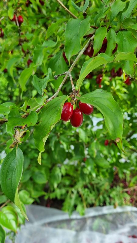 Ja inderdaad. Kreeg het antwoord van het hofje waar ik ze geplukt heb, dat het Kornellkirschen zijn. Met het afrekenen hoorde ik al iets van Kirschen zeggen, maar ik dacht: ach die man noemt het zo, maar het zijn dus echt Kornoeljekersen. Ik probeer er toch gebak van te maken zoals ik het met de Aronia zou doen. Wordt weer spannend! Ik heb trouwens wel recepten gevonden om taarten te maken, maar dan moet ik weer speciale geleimiddelen in huis halen.