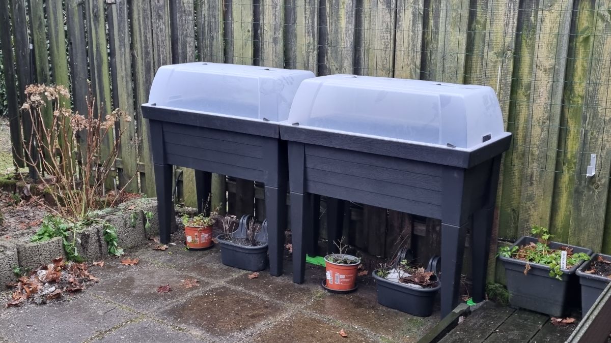 Ik heb een beetje spijt van al mijn speciebakken op de grond nu met mijn artrose. 2 Bakken ga ik denk ik op pallets zetten, zou nog meer pallets kunnen hebben, maar ik weet niet hoe er goedkoop aan te komen.