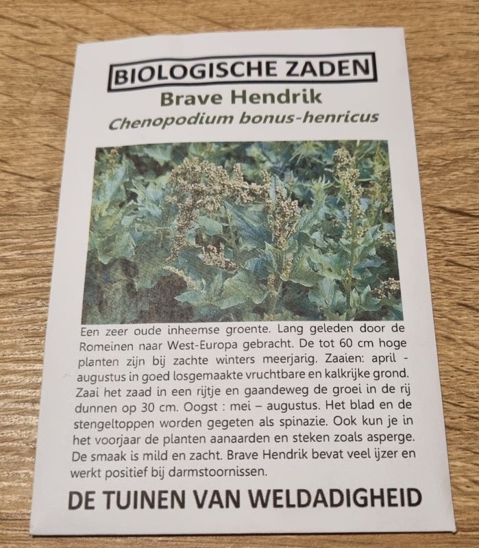 Ja klopt. Op mijn zakje staat er niets over. Maar als ik op internet zoek, dan staat er dit: Zaad van brave hendrik moet een koude periode doormaken om te kunnen kiemen. Zaad uit zakjes van de zaadhandel heeft dat meestal niet gehad. Het is geoogst, gedroogd en verpakt en ligt dan vorstvrij te wachten op de koper. Het resultaat is dat soms maar enkele zaadjes uit een zakje kiemen. Dat terwijl eenmaal gevestigde planten zich in de natuur spontaan uitzaaien! Zaai de zaadjes dus in gewone potgrond, maak de aarde nat en zet de pot minstens twee weken in de koelkast op de koudste plek. Zet hem daarna op een warme vensterbank en verwonder u over het resultaat! Vanaf april zaaien staat er. Januari is erg vroeg lijkt mij. Ik ga alles altijd nogmaals doorlezen als ik ga zaaien, vandaar. Goed dat je er mij aan herinnert.