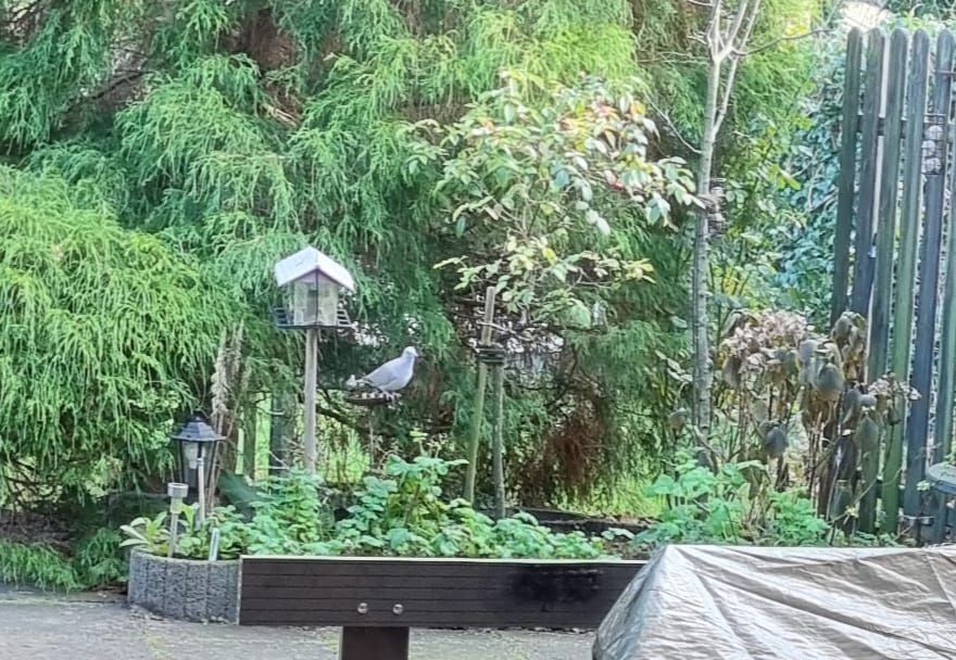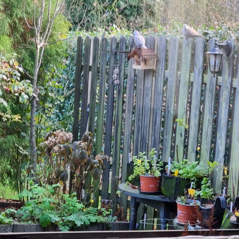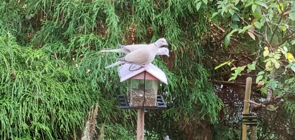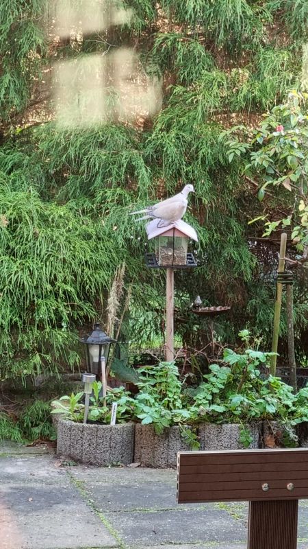 Ja wij hebben hier ook een "verwilderde" tuin. Ook omdat wij er niet zo veel tijd aan kunnen besteden en het stikt bij ons ook van de vogels. Zie deze tortelduiven die steeds tammer worden en bij elkaar zitten. Vorig jaar hadden wij een hond die de meeste tijd buiten was en die joeg de duiven altijd weg, nu hebben wij meer een binnen hond.😂 Ze drinken ook water uit het bakje dat wij regelmatig vullen.
