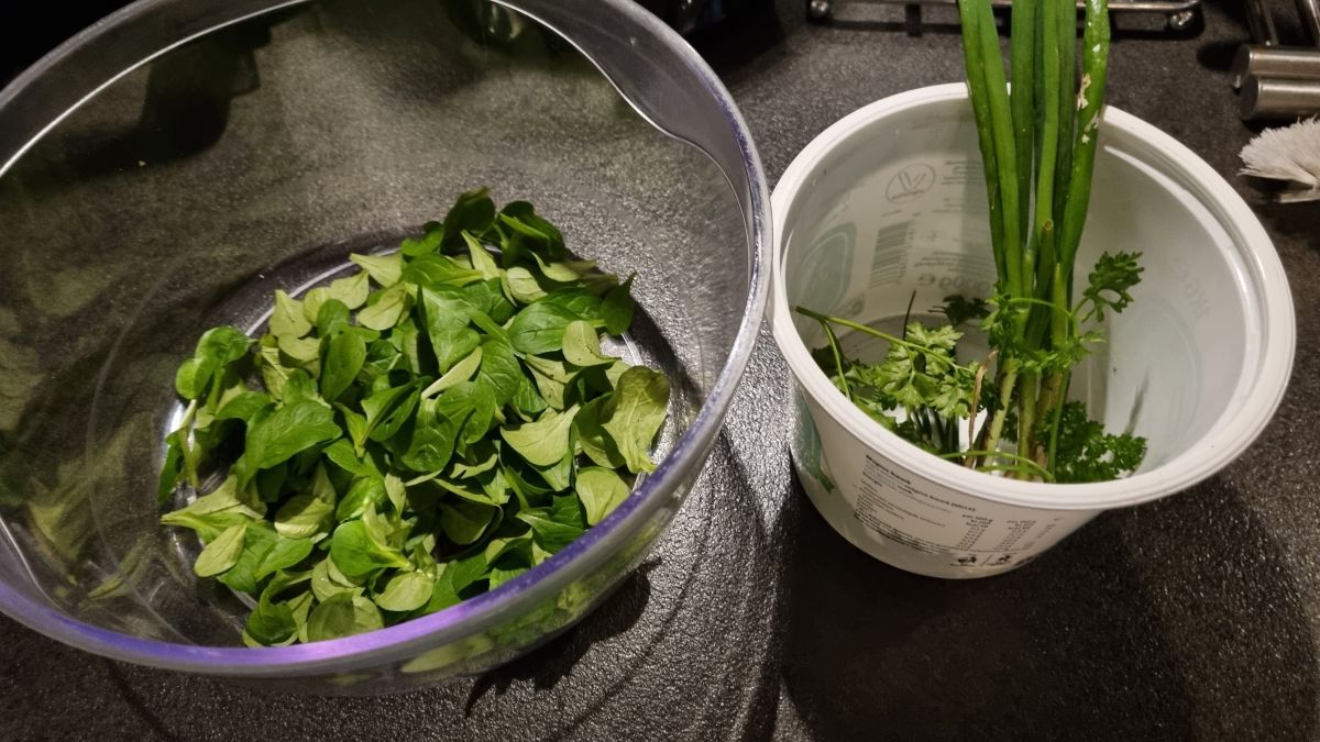 Daarom ga ik ook al mijn sla, postelein e.d. opmaken. Krijgen meeldauw en beestjes.