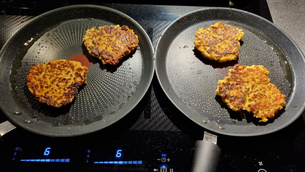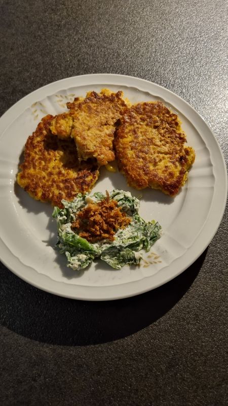 Pompoen pannenkoekjes voor 2 personen Nodig: Voor ± 10 pannenkoekjes: 🌱 1 (baby) pompoen van 370 gram voor 200 gram pompoenblokjes 🌱 200 ml (haver) melk 🌱 2 eieren 🌱 150 g havermout 🌱 100 g gemalen Goudse kaas 🌱 1 tl gemalen komijn 🌱 1 tl knoflookpoeder 🌱 peper en zout 🌱 Olijf of koolzaadolie Voor de salade: 🌱Veldsla 🌱2 bosuitjes 🌱2 (Egyptische) uitjes 🌱2 el Philadelphia 🌱2 el geroosterde uitjes 🌱peper, zout, peterselie, bieslook Werkwijze: 🍜 Maak de pompoen schoon en snijdt ze in kleine stukjes. 🍜 Kook de stukjes gaar in 10 minuten. Giet het vocht af en pureer de pompoen. 🍜 Klop de melk met de eieren los en voeg de havermout erdoor. 🍜 Roer de pompoen en de kruiden door het mengsel. Roer dan de kaas erdoor. 🍜 Verwarm de olie en bak in 1 of 2 pannen er kleine pannenkoekjes van op middelhoog vuur. Niet al te hoog, want ze worden anders snel bruin, maar nog niet goed gaar. 🍜 Maak de veldsla en de uitjes schoon, snijdt ze in ringetjes. Snijdt of knipt de kruiden klein. 🍜 Meng de veldsla, uitjes, de Philadelphia en de kruiden door elkaar. 🍜 Verdeel de salade over de borden en doe er 1 el geroosterde uitjes op. Vond je dit een lekker recept, dan zou ik het leuk vinden als je een reactie zou willen geven op de Facebook groep. Voor meer zelfverzonnen recepten ga dan naar deze groep (even lid worden). https://www.facebook.com/groups/lekkerengezondkokenmetpetra