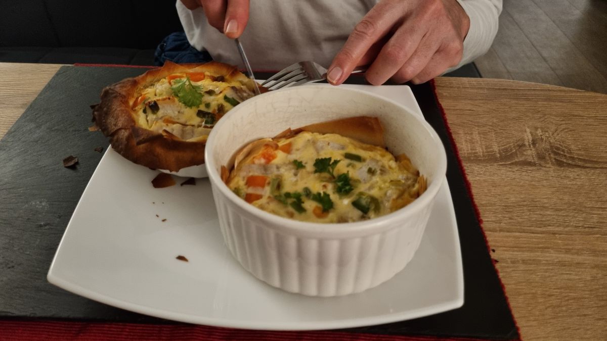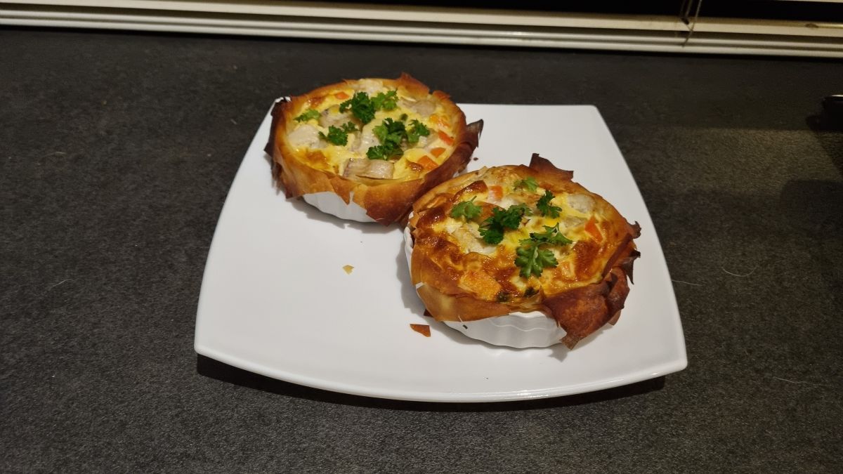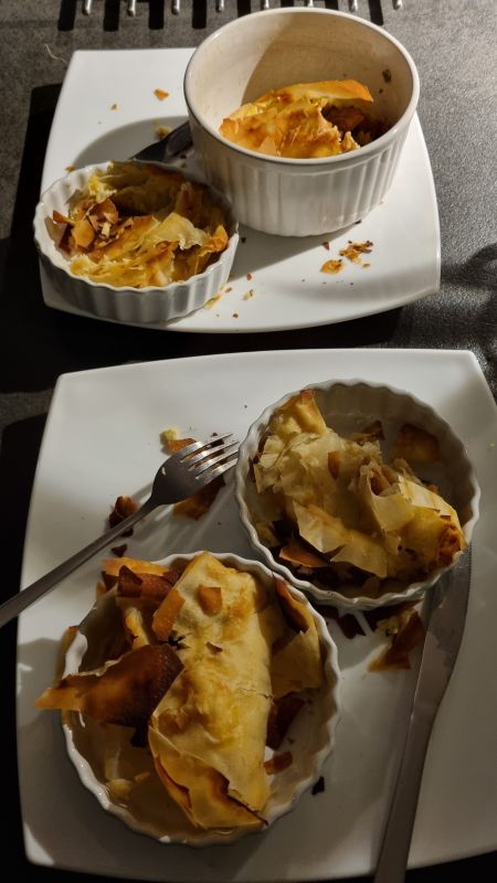Een recept geprobeerd met wortel en filodeeg, maar ging niet helemaal goed. Maar wij hebben de wortel in ieder geval opgegeten. Ik had het nog lekkerder gemaakt met bosuitjes en knoflook en peterselie. Maar het filodeeg was in de schaaltjes niet gaar en wat erover heen hing zwart. Ik had precies de schaaltjes genomen die ze aangaven, op een na dan, want eentje was gebroken een tijdje geleden. Maar recept dus weg. Een heleboel filodeeg weg. Was niet echt vers, maar ook niet over de datum.