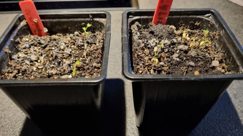 28 februari kwamen al deze zaaiingen op. Nu zien ze er nog steeds zo uit. Kan ik ze nu beter apart in een potje gaan zetten? Maar ze zijn nog zo iel. @henkg @MROE Hoe jullie dit toch voor elkaar krijgen is mij een wonder. Ze staan koud en onder extra licht. Tenminste in mijn kast is het gauw rond de 20 graden, ook al staan de zo op de koude plank, maar met licht wordt het ook al warmer en naast een verwarming. Ik was zo blij dat ze snel opkwamen, maar zo het eruit ziet, moet ik ze aan het eind van het jaar ze weer kopen.