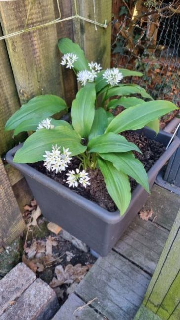 Leuk die daslook! Die heb ik op een schaduwrijke plaats staan, die kon ik dan goed benutten. Zo stond die er 2 weken geleden nog bij. Nu bloemen uitgebloeid.