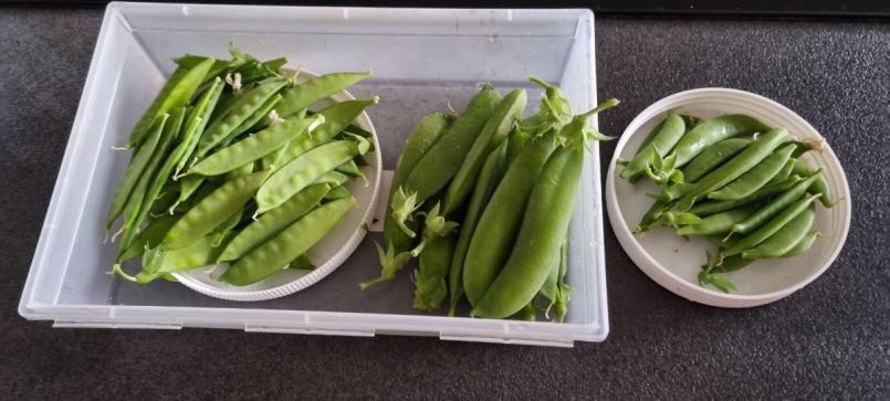 @Gitta die op de foto heb ik dus nog nooit gezaaid, dit jaar voor het eerst. Ik heb peulen gehad van de MM, die liet ik iets dikker worden en de Sugarsnaps zo veel mogelijk plat. En ik vond beide lekker. Zowel geroerbakt als gestoomd en zelfs door een salade, even 1 minuut blancheren en dan kun je ze eten. Ik moet ze alleen in het voorjaar zetten, in het najaar komt er niets aan. Hier de eerste foto van mijn Sugarsnaps eind september 2023. Toen lukten ze wel in het najaar. De tweede foto van mei 2024 en de peulen er naast. Ik kijk er echt weer naar uit. Een leuke plant die zijn best doet en je ziet dus ook echt wat en het zoeken op alle kanten waar ze zitten is altijd een uitdaging. Nog 2 weekjes, dan ga ik ze weer voorzaaien.
