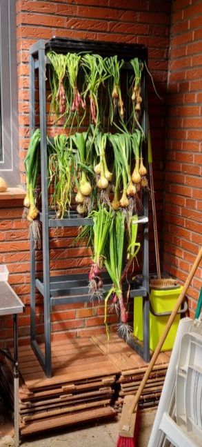 @Tanja65 en in augustus hangen er de uien en de knoflook aan. Buiten onder het afdak. Was ik vergeten te vermelden. Ik hoop dit jaar nog veel meer uien en knoflook.