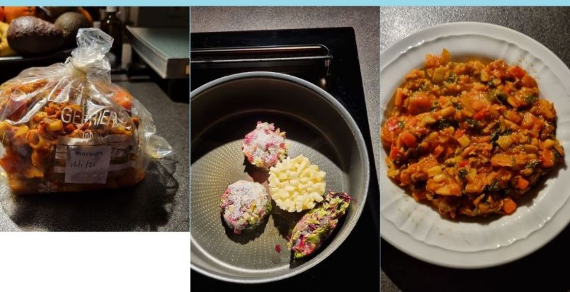 Vanavond de snijbietstelen en blad en knolselderijstukjes erdoor gedaan. Dat leek mij wel veilig. Waren allemaal geblancheerd. Wel een half jaar geleden gedaan.