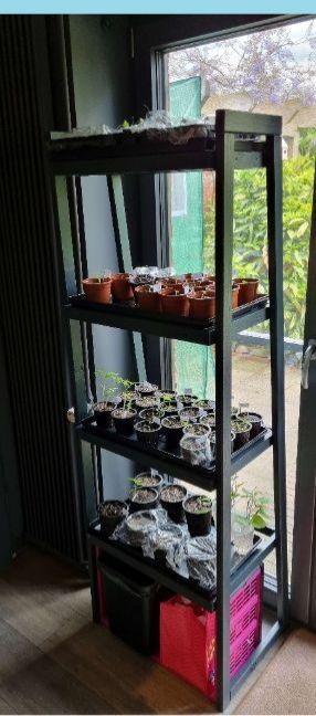 Ik moet veel geduld hebben. Ik heb de warmtematjes en de ledlampjes vrijdag binnen gekregen, maar er moet nog een plankje bevestigd worden (nu gedaan, na verzoek van mij), snoer moet gemaakt worden, want wij hebben een lamp op de keukenkast staan met stopcontact en daar moet dan een speciale verdeelstekker komen voor mijn snoer naar de groenteflat waar straks ook andere voorzaaiingen komen. Dus nog even geen paprika, aubergine en prei voorzaaien. De prei heeft alleen licht nodig, moet dus even kijken hoe het allemaal past. Ik heb voorlopig 2 setjes besteld om te kijken hoe het gaat.