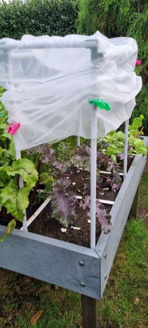 Ik ben mij ook al een beetje aan het voorbereiden voor de winter. Ik had peulen in 2 lage zakken gezet en die wil ik eigenlijk weer op mijn tafel zetten waar 6 zakken op passen met rekken erachter. Maar daar wil ik dus later bonen in gaan zetten, maar in kader van wisselteelt de aarde eruit en die verdeeld in andere bakken. Ik had nu grote zakken op de tafel staan, maar die wil ik liever gebruiken voor groente die wat langere wortels aanmaken. En de 2 lage zakken vul ik dan met deels gebruikte aarde (plantjes die niet opkwam bij voorzaaien bv.), een beetje tomatenaarde (waar tomaten in hebben gestaan) en een groot deel met verse aarde. Daar hoef ik dan niet meer naar om te kijken. 1 Grote Hero is al omgeschept, die staat vol met rode ui en sjalotten. De andere 3 grote moeten nog gebeuren. Dat doe ik in het voorjaar, want er staat nog wat in. Verder is het mijn dagelijks werk ook mos weghalen. De grote Heros van 120 x 120 dek ik zoveel mogelijk af met mutsen om de ergste regens tegen te houden. Een deel glijd er dan van af. De Heros 60 x 120 dek ik ook deels af tegen de rekken aan, dus het voorste gedeelte wat normaal snel nat wordt, wordt ook minder nat. Gisteren ook de dille eruit gehaald, eerst lekker nog wat dille op mijn gerookte zalm gedaan. Mijn Hochbeet laat ik de meeste tijd dicht, die gebruik ik als een soort kasje, daar staat andijvie, snijbiet en wintersla in. De andijvie wil niet erg. Als het zonnetje schijnt en droog is, dan gaat hij tussen 11.00 en 15.00 uur even open.