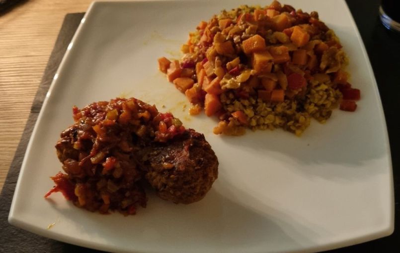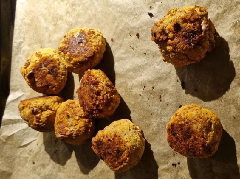 Vegetarische gehaktballen met linzen Nodig: 🌱 Linzen 140 gram (bruin of rood) 🌱 Havermout 50 gram 🌱 Walnoten 100 gram 🌱 Ui, 1 gesneden 🌱 Olijfolie 1 el 🌱 Knoflookteentjes 3, gesneden 🌱 Gemalen lijnzaad, 1 el 🌱 Gistvlokken of 1 el of gerapte kaas 🌱 Zout en zwarte peper naar smaak Zwarte peper naar smaak Eventueel tomatensaus gemaakt van: 🌱`Verse tomaten, 400 gram, gesneden 🌱 Ui 1/2, fijn gesneden 🌱 Wortel 1, gesneden 🌱 Selderij 1, gesneden 🌱 Olie 1 el 🌱 Knoflookteentje 2, gesneden 🌱 Knoflookteentje 2, gesneden Werkwijze: 🍜 Was de bruine linzen eerst en week ze vervolgens 15 minuten in water. Rode linzen kun je direct 15 minuten koken. Bruine linzen doe je in een grote pan met deksel erop en kook ze 20 minuten tot een half uur. 🍜 Giet na het koken het overtollige water af en bewaar het water voor eventueel later. 🍜 Doe wat olie in een grote pan en voeg de gesnipperde ui toe en bak deze langzaam. 🍜 Zet het vuur lager en laat de ui sudderen tot deze transparant wordt. (5 minuten) 🍜 Bak de gesnipperde knoflook een minuut mee. 🍜 Voeg nu de havermout, gistvlokken of kaas, zout, gemalen peperkorrels en lijnzaad toe. 🍜 Voeg de gekookte linzen toe aan dit mengsel en roer alles goed door. Als je bruine linzen nam, plet ze dan met een stamper. Rode linzen zijn zachter. Als alles te droog is, voeg dan wat linzenwater toe. 🍜 Stel de oventemperatuur in op 190 graden. 🍜 Maak vervolgens met je handen balletjes van het beslag. 🍜 Doe een stuk bakpapier op de bakplaat en vet ze in met wat olie. 🍜 Schep alle linzenballetjes op de bakplaat. 🍜 Bak tot ze goudbruin zijn, zo’n 20-30 minuten. Draai ze tijdens het bakken elke kant om. Ik heb het niet geprobeerd, maar de volgende keer ga ik ze in de airfryer doen, dan kun je ze gemakkelijk rond schudden. Geef deze balletjes met wat tomatensaus, zelf gemaakt of uit een fles. Ik heb een tijdlang in de keuken gestaan, want ernaast had ik ook nog een combinatie van rijst en boekweit gekookt en allerlei groente. En ook een verse tomatensaus gemaakt. Maar je kunt ook een kant en klare saus erbij nemen en wat erwten en appelmoes b.v. Eventueel uit een pot of blik. Vond je dit een lekker recept, dan zou ik het leuk vinden als je een reactie zou willen geven op de Facebook groep. Voor meer zelfverzonnen recepten ga dan naar deze groep (even lid worden). https://www.facebook.com/groups/lekkerengezondkokenmetpetra
