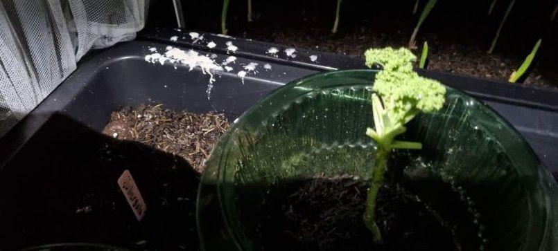 Ik weet niet zeker meer of het luis was, maar in ieder geval zaten ze wel onder de beestjes en waren heel goed opgeknapt. Was er zo blij mee! Totdat toch weer een slak half december eraan begon te eten. Volgend seizoen begin ik in maart al slakkenkorrels te gooien, want ik heb niet zo'n speciale kolenbak als jij waar echt niets in kan komen, tenzij het al in de aarde zat in de emmer natuurlijk. Maar dat blijft altijd beperkt.