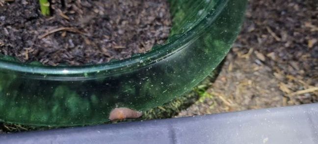 Al anderhalf jaar bezig om boerenkool te laten groeien en ze komen niet vaker dan 1 mager steeltje. 3 Plantjes gekregen van @Rookie die waren toen net aangetast, zat o.a. de luis en die had ik helemaal behandeld door veel water spuiten en nakijken op slakjes en die waren helemaal opgeknapt. Zo blij! Maar de laatste weken zaten er steeds gele blaadjes aan en die verwijderd, maar hij zat de laatste week ook vol gaten in mijn bladeren. Toen heb ik de 3 planten maar geoogst en de kool geblancheerd. Moet je zien wat ik erover heb gehouden. Ik zie bij iedereen altijd van die grote kroppen. Vanavond om 9.00 uur met mijn koplamp naar buiten, ik kon het nog moeilijk zien, want had geen 2e lamp bij mij. Ik wou net de gordijntjes weer sluiten, totdat ik de dader zag zitten. Ja, als je weet dat slakken 6 jaar kunnen houden, die verstoppen zich dan in de aarde. Ik heb zijn kerstmaal weggehaald.