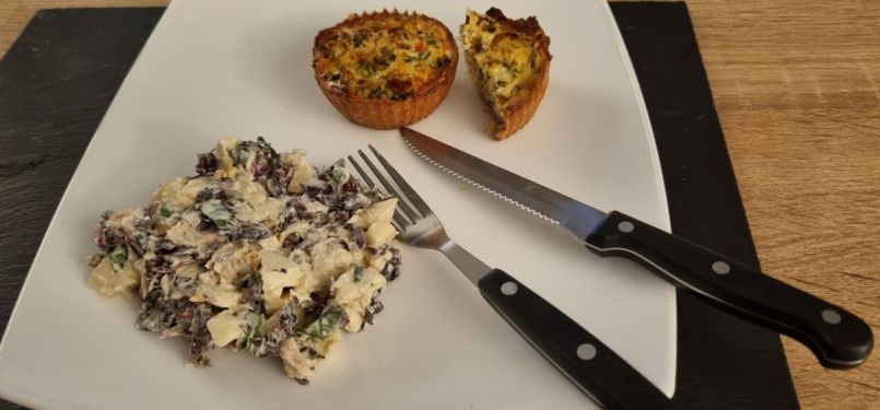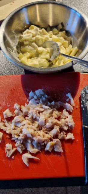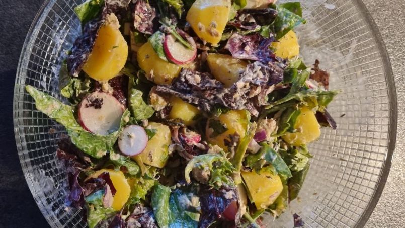 Aardappelsalade met haring Nodig: Voor 2 personen als hoofdmaaltijd: 🌱Minikrieltjes 400 gr 🌱2 zoute haringen of blikje gerookte haring 🌱150 gr veldsla of pluksla 🌱10 radijsjes schoongemaakt, in plakjes 🌱100 ml crème fraiche 🌱1 klein rood uitje in fijne stukjes 🌱2 el fijngesneden dille 🌱Peper Werkwijze: 🍜Kook de minikriel in water met zout gaar in 15 - 20 minuten. Laat ze afkoelen. 🍜Snijd de haring in stukjes. 🍜Schep de sla, de radijs, de haring en de afgekoelde krieltjes door elkaar in een schaal. 🍜Klop de crème fraiche met de dille, rode ui, peper en zout door elkaar in een schaaltje en schep het door de salade. TIP: i.p.v. dille kun je ook bieslook nemen. I.p.v. crème fraiche kun je mascarpone nemen. Vond je dit een lekker recept, dan zou ik het leuk vinden als je een reactie zou willen geven op de Facebook groep. Voor meer zelfverzonnen recepten ga dan naar deze groep (even lid worden). https://www.facebook.com/groups/lekkerengezondkokenmetpetra