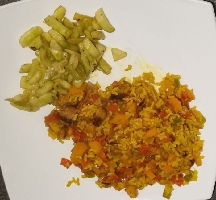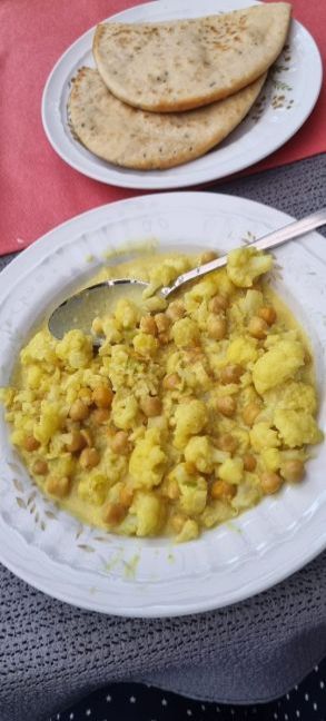 Bloemkoolcurry Ik heb dit recept gebruikt: https://www.jumbo.com/recepten/bloemkoolcurry-506126 Ik heb i.p.v. Vadouvan kruiden zelf een kruidenmix gemaakt van: 1 lp kerriepoeder 1 th komijnpoeder ½ th gember ½ th peper ½ th kaneel ½ th koriander ½ th kurkuma Je kunt ook venkelpoeder, chili en dragon toevoegen, net wat je lekker vindt. En ik heb maar 3 bosuitjes genomen voor 2 personen, dus verder alles door de helft. Vrijdag en vandaag heb ik het met bloemkool gegeten, vandaag vergeten er amandelschaafsel op te doen, dus geen foto ervan. Vrijdag wel, maar toen heb ik er geen foto van gemaakt.