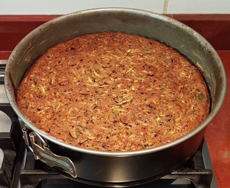 Zoete courgettetaart Nodig: 🌱100 gr walnoten grof gehakt 🌱2 courgettes 🌱3 eieren 🌱100 - 125 gr rietsuiker 🌱100 ml olijfolie 🌱200 gr bloem gezeefd 🌱7 gr bakpoeder 🌱1 el koekkruiden 🌱1 springvorm 24 cm Ingevet en met bloem bestoven met een stuk bakpapier op de bodem Werkwijze: 🍜 Verwarm de oven voor op 175 graden. 🍜 Rooster de walnoten kort droog in de pan en laat afkoelen op een bord. 🍜 Was de courgettes, dep ze droog en rasp ze grof. 🍜 Klop de eieren met de suiker luchtig, evt met een mixer. Mix de olie erdoor. 🍜 Meng in een andere kom de bloem, bakpoeder, koekkruiden en het zout. 🍜 Klop het bloemmengsel luchtig bij het eiermengsel. Voeg dan courgette en walnoten toe. 🍜 Leg een rand bakpapier op de bodem in de vorm tegen het plakken en giet het mengsel in de vorm. Bak het ongeveer een uur in het midden in de oven tot het lichtbruin is geworden, maar de binnenkant nog wat vochtig is. 🍜 Neem de vorm uit de oven en laat 10 minuten afkoelen. 🍜 Haal het mes langs de randen om de taart los te maken. Doe de ring los en als je er papier op hebt liggen, kun je het zo aansnijden. Je kunt het ook omdraaien op een bord of taartrooster en laat het verder afkoelen. Hij is zowel warm als koud lekker. . Vond je dit een lekker recept, dan zou ik het leuk vinden als je een reactie zou willen geven op de Facebook groep. Voor meer zelfverzonnen recepten ga dan naar deze groep (even lid worden). https://www.facebook.com/groups/lekkerengezondkokenmetpetra
