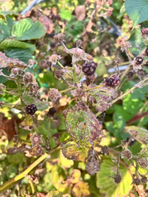 1. Zie onderstaande foto hele gedeelten van mijn bramen lijken verdroogd. Kan het ook een andere oorzaak hebben. En wat kan je daaraan doen of hoe voorkom je het