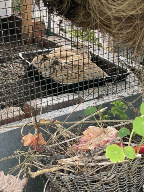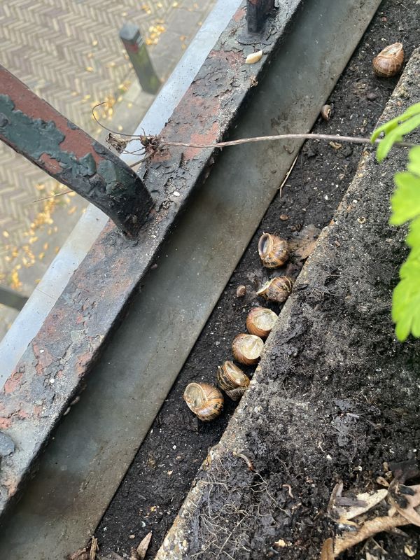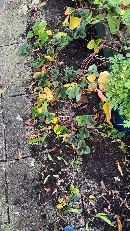 Ik heb eerst alle potten met paprika’s, pepers en aubergine’s leeg gemaakt…. Daarna kon ik bij de bakken van de inmiddels 5 jaar oude aardbeien ;eindelijk de helft van langs mijn slaapkamer balkon geruimd….hopelijk komende week de rest….💪🌱👩🍳🌱🐓🌱🎃🌱 Eigenlijk te mooi om weg te halen…😬 Stekjes genoeg 😅 slakken schuilplaats…😬
