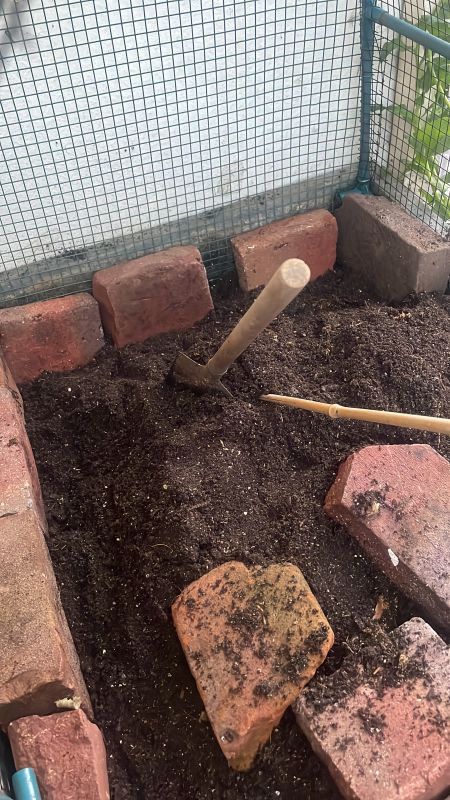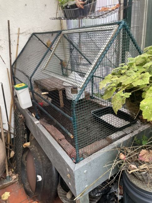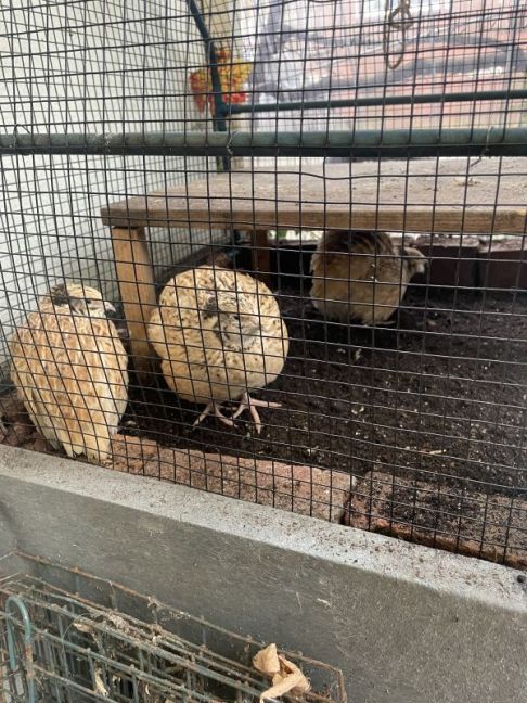 Mijn 3 kwartel dametjes hebben inmiddels hun nieuwe behuizing betrokken 😊 Leuk om te zien hoe verbaasd ze in de rondte keken … 😍 Het verdient geen schoonheids prijs … maar fijn dat het klaar is. Nu ze op “zand” ( dure moestuingrond” 😅) zitten kan ik gewoon iedere ochtend hun uitwerpselen ff aanharken en met de kippenmest afvoeren naar de compostton 👍😊 Het “deurtje” is een met gaas bekleed paneeltje dat er nog lag ; het werkt voor nu maar dat kan beter met de tijd…🤞 Kwartels blij ik blij👍😊 Hopelijk blijft het muis vrij…🤞🤞🤞😬🌱👩🍳🌱🐓🌱🎃🌱