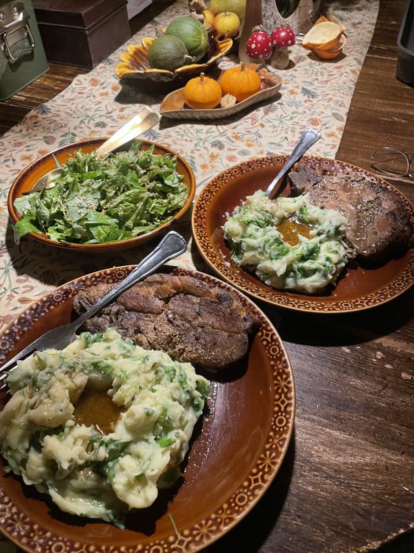 Vanavond was ons eten ook weer eens uet! 😋 Stampotraapsteeltjes met kuiltje jus en flinke salade uet Erbij karbonade die mijn lief de slager zelf hakte zodat ze dikker waren dan die van de super…😋🌱👩🍳🌱🐓🌱🎃🌱
