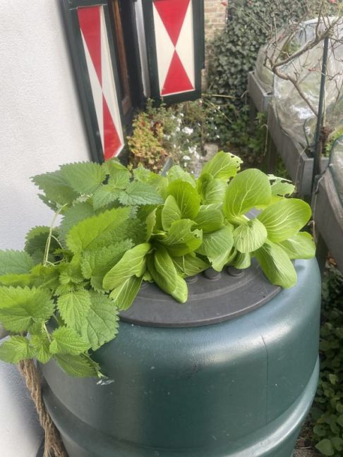 Uit mijn 2e voortuin bak had ik al de brocolliroosjes geoogst en vandaag ook het vak met m’n mini paksoi geoogst…ze zouden nog wat groter kunnen maar ik vind ze oke zo👍😊 Ook nog met snoeischaar en pincet de brandnetels afgeknipt… om te drogen voor de thee…. Ik plukte ze altijd uit het bos maar nu ze spontaan in mijn moestuinbak groeien vind ik dit wel super makkelijk👍😊 Kappen er weer terug op…(wel open overdag maar ‘s nachts dicht.) Groeit nog steeds allemaal….😊🌱👩🍳🌱🐓🌱🎃🌱