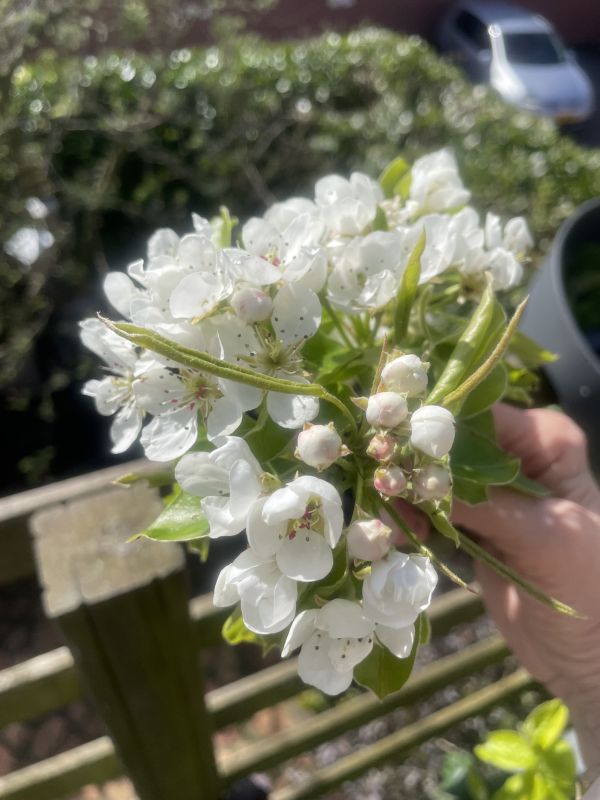 Mijn perenboompje in pot bloeit ook zo mooi 😍 Helaas lijkt mijn pruimenboompje in pot ook niet happy… paar takken lijkt geen leven meer in te zitten en nog maar 1 tak heeft bloemetjes….😬😬😬🌱👩🍳🌱🐣🌱🌷🌱