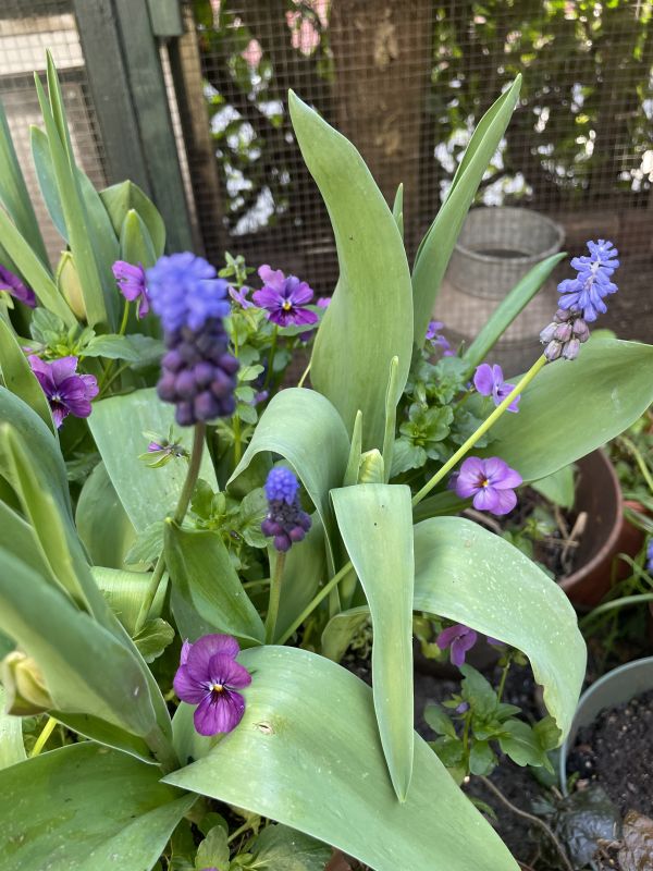 De blauwe druifjes uit mijn bollen lasagna pot bloeien en de tulpen komen er ook aan… zo benieuwd!…😊🌱👩🍳🌱🐣🌱🌷🌱