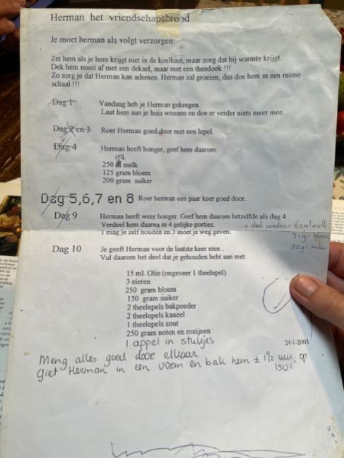 Super leuk dit!😍 Ik ben van de boeken en in mijn oude boek “Brood” van Linda Collister & Anthony Blake vind ik nu zelfs nog het stencil waar ik mee begon…😊 Maar ook het orginele recept uit het boek zal ik jullie niet onthouden..leuk in deze tijd het vriendschaps brood weer actief gedeeld gaat worden!👍😍