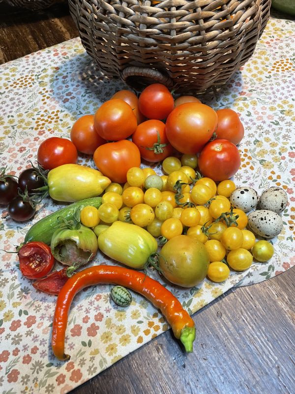 Oogt van vandaag… de muisjes hebben ontdekt dat tomaten zaadjes hebben…😬…gelukkig nu pas 😅🌱👩🍳🌱🐓🌱🎃🌱 En snijbiet uit mijn voortuin bakken.. 😊