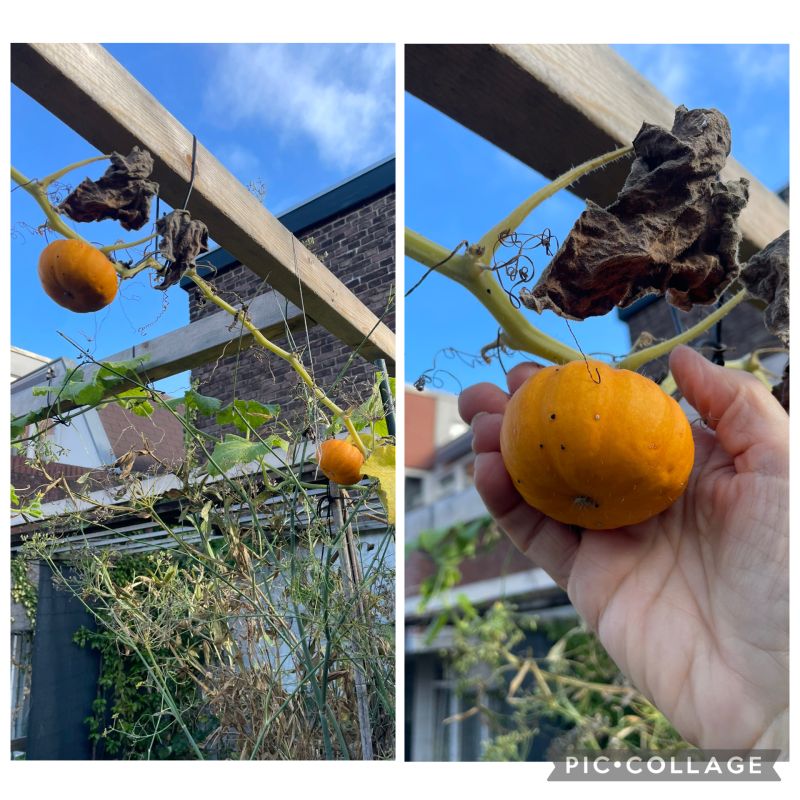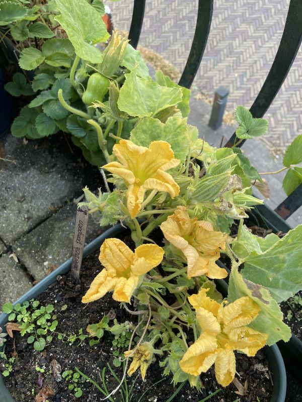 Ik doe die al een paar jaar @loes 😍 Dit jaar deed ik het wat “ slordig en liet de plant te lang in de oppot pot staat…🤦♀️ toen ik haar wilde verpotten was ze al flink doorgeworted in de plant zak daaronder ( op mijn dakterras) dus liet ik het zo…. 😬 Nu heb ik “ maar” 2 kleine pompoentjes terwijl ik er ook we 5 aan een plant gehad heb….🤔 Ze zijn nu aan het verkurken…👍😊 Dit is een butternut pompoen die ik in mei uitgeplant heb en nu pas 1 pompoen maakt…😞 Ik vind het gewoon sneu voor de plant hoe ik haar d’r best zie doen met al die bloemen nu tegelijk en wetend dat het haar nu niet meer gaat lukken…😞 dus daar herken ik jouw ervaring van nu wel in… andere butternut op andere plek heb ik al geruimd….🌱👩🍳🌱🐓🌱🎃🌱