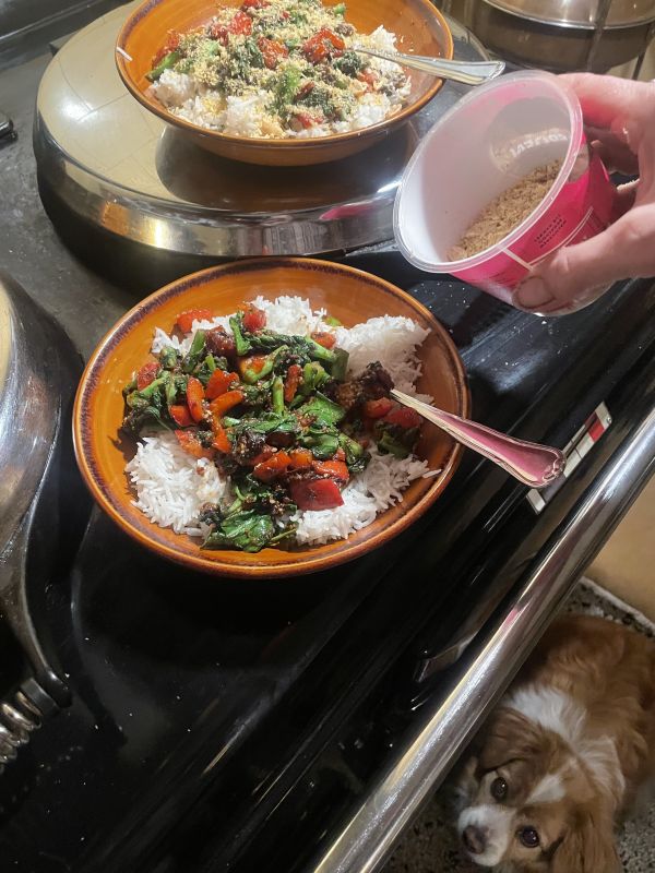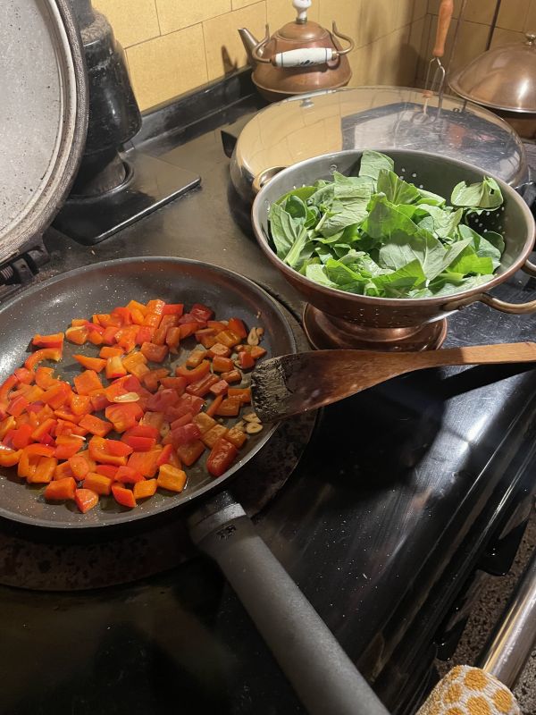 Gisteren alle (doorschietende) PAKSOI planten geoogst! RECEPT; 🌱rijst koken. Ik maakte een sesamsaus ; 🌱Koekenpan bodem met sesamzaadjes geroosterd , af laten koelen 🌱in de vijzel; -2el donkere sojasaus -2tlp lichte basterdsuiker -1 teen geperste knoflook -3 el sesamolie vijzelen tot grove pasta. 🌱paksoi grof gesneden. 🌱blokjes rode paprika met plakjes knoflook geroer bakt en laatste min. de paksoi erbij. Het was weer heerlijk!😋🌱👩🍳🌱🐓🌱☃️🌱 Tips; 1…met jonge paksoi kun je de struikjes doorsnijden en in z’n geheel op het laatst meestoven… 2… Chili pepertje in ringetjes ipv paprika voor wie van pittig houd..😊