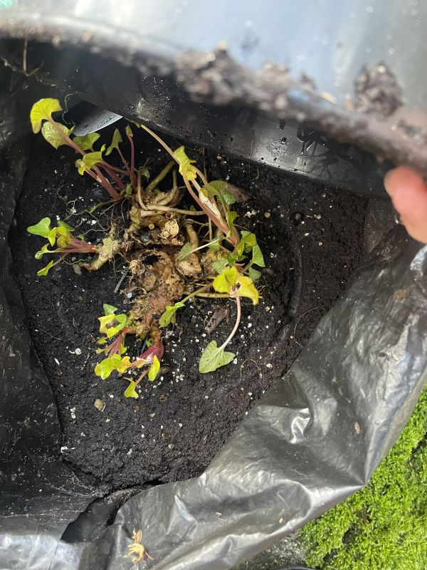 Nou het niveau van aarde is in mijn zak erg gezakt… ik wilde juist de boel wat ophogen daardoor ontdekte ik dat er een hele lange dikke wortel door de zak heen ,en tussen mijn dakterras tegels heen , onder de tegels is gekropen…😬 Bij mij doen meer planten dat omdat er onder die tegels water op het dak blijft staan… Dus voor nu besloten de boel niet te verstoren en dan na de stengel oogst de Brave Hendrik opnieuw op te potten…🤔🌱👩🍳🌱🐓🌱☃️🌱