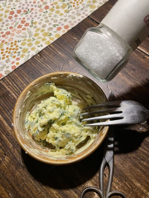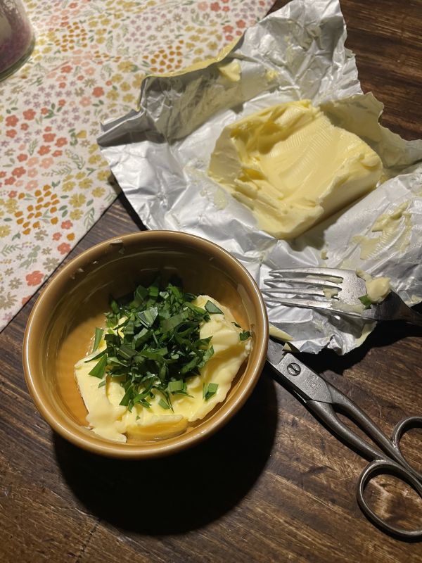 Gister de grootste blaadjes van mij daslook in kleine zak geoogst n daar gelijk daslook boter van gemaakt 😋 Heerlijk op een stokbroodje bij de soep maar ook gewoon op snee brood met plak kaas erop 😋 Boter eerst op hele lage stand heel kort in de mag iets zachter gemaakt voor beter doormengen…. Ik gebruik ongezouten roomboter maar voor dit nog wat gemalen zee zout erdoor . Ik verheug me op de lunch van vandaag 😋🌱👩🍳🌱🐓🌱☃️🌱