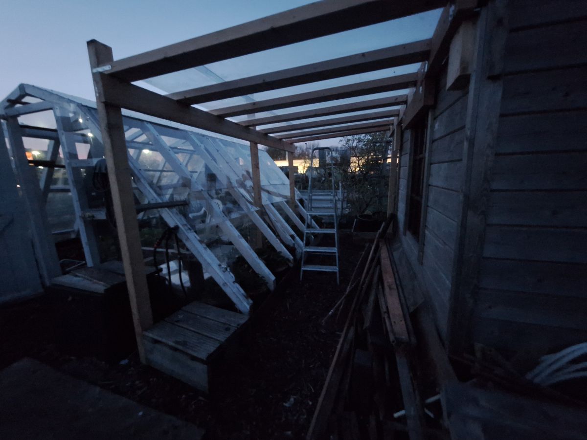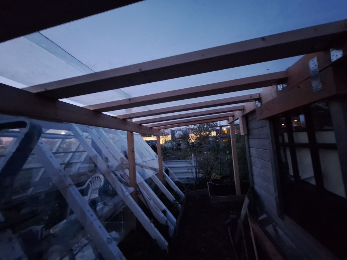 Nog net voor het donker het afdakje voor mijn tomaten afgemaakt. Nouja, bijna dan , hier en daar moet ie nog verstevigd worden maar het dakje zit erop geschroeft en dat was nog het lastigste. Wellicht maak ik tzt de zijkanten ook nog dicht, dan heb ik er een klein kasje bij. En dan kan ik een tafeltje timmeren boven waar nu de aardbeien staan....Maar voor dit seizoen vind ik het weer even welletjes met de bouwerij...