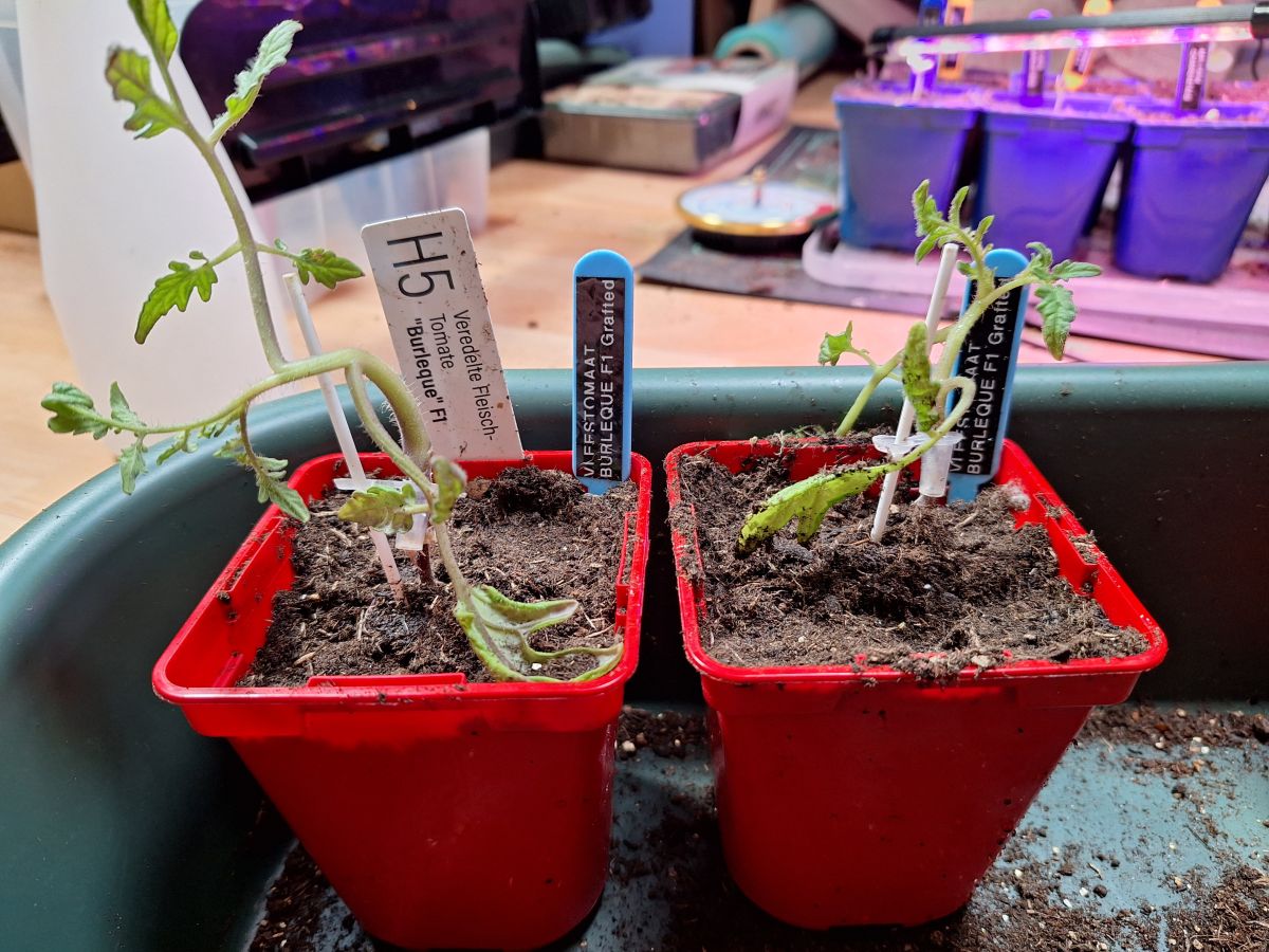 Ja ik hoop het ook, dit waren mijn beste plantjes. Maar ik vrees het ergste, en hier stonden ook al mijn echelon onderstamplantjes in waarmee ik wilde gaan proberen te enten, de (enige) ziekteresistente rassen die ik buiten wilde planten zoals crimson crush, crimson blush, crimson plum Daarnaast ook cherrytomaatjes, san marzano, de iris struiktomaat etc. Als er al iets te redden valt weet ik niet welk plantje bij welk labeltje hoort...... 🤨 Kinderen zijn hinderen !