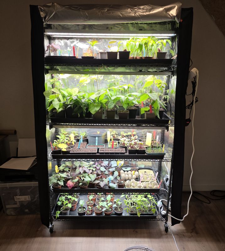 @Bernaar Ik kweek al mijn groentes voor in de groeitent. Ik heb 5 lagen. En kan honderden planten kwijt. De boontjes staan op 1 laag. Dit is nog een oude foto maar hierop zie je mooi de lagen